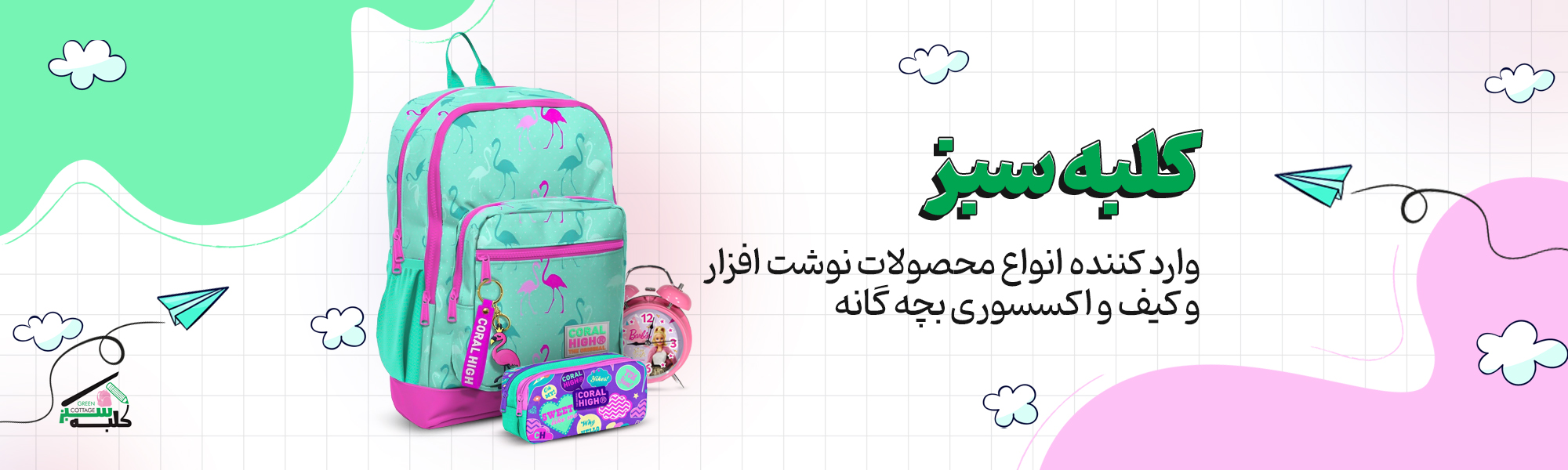 کلبه سبز (وارد کننده انواع محصولات نوشت افزار و کیف و اکسسوری بچه گانه)